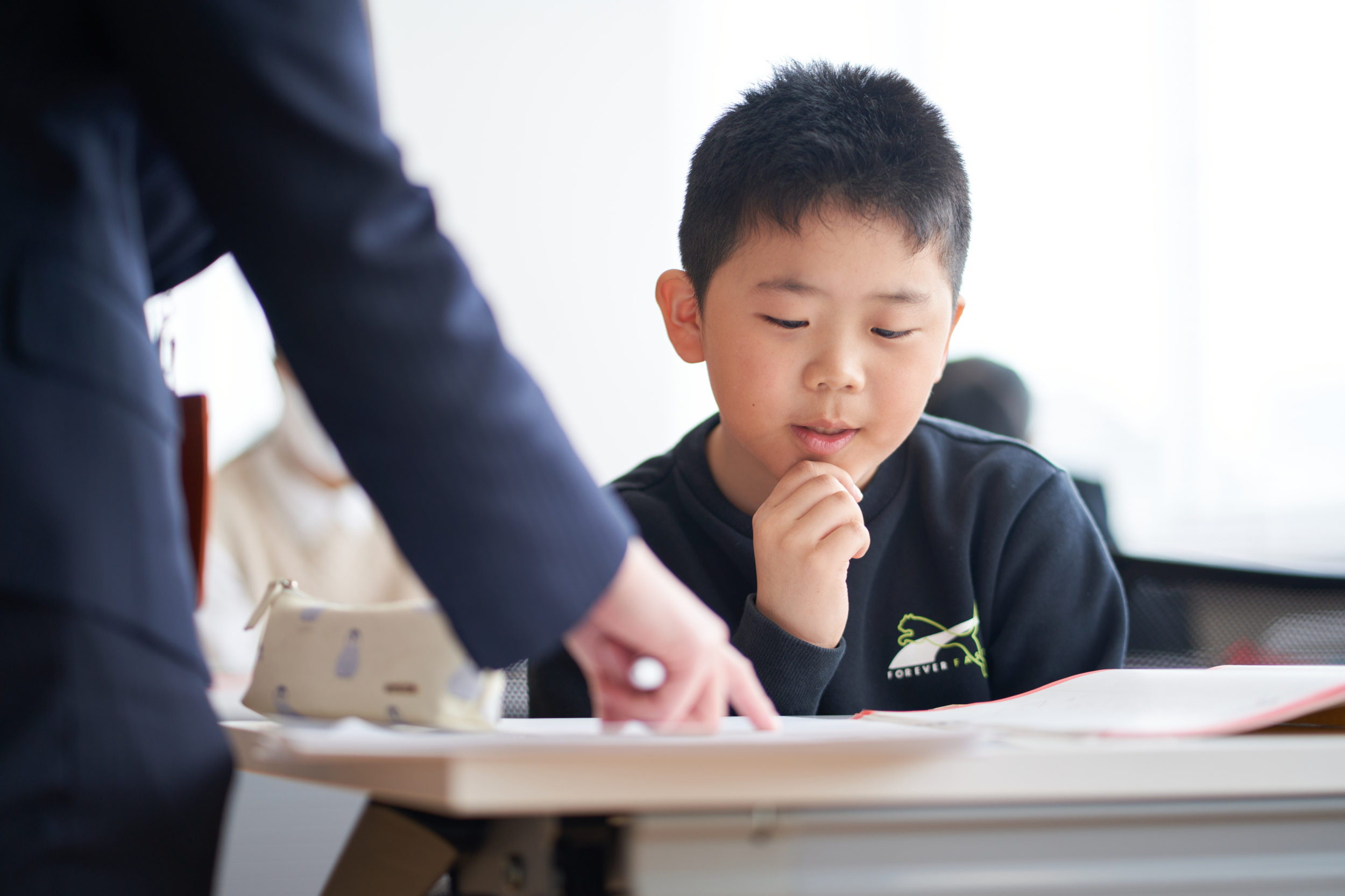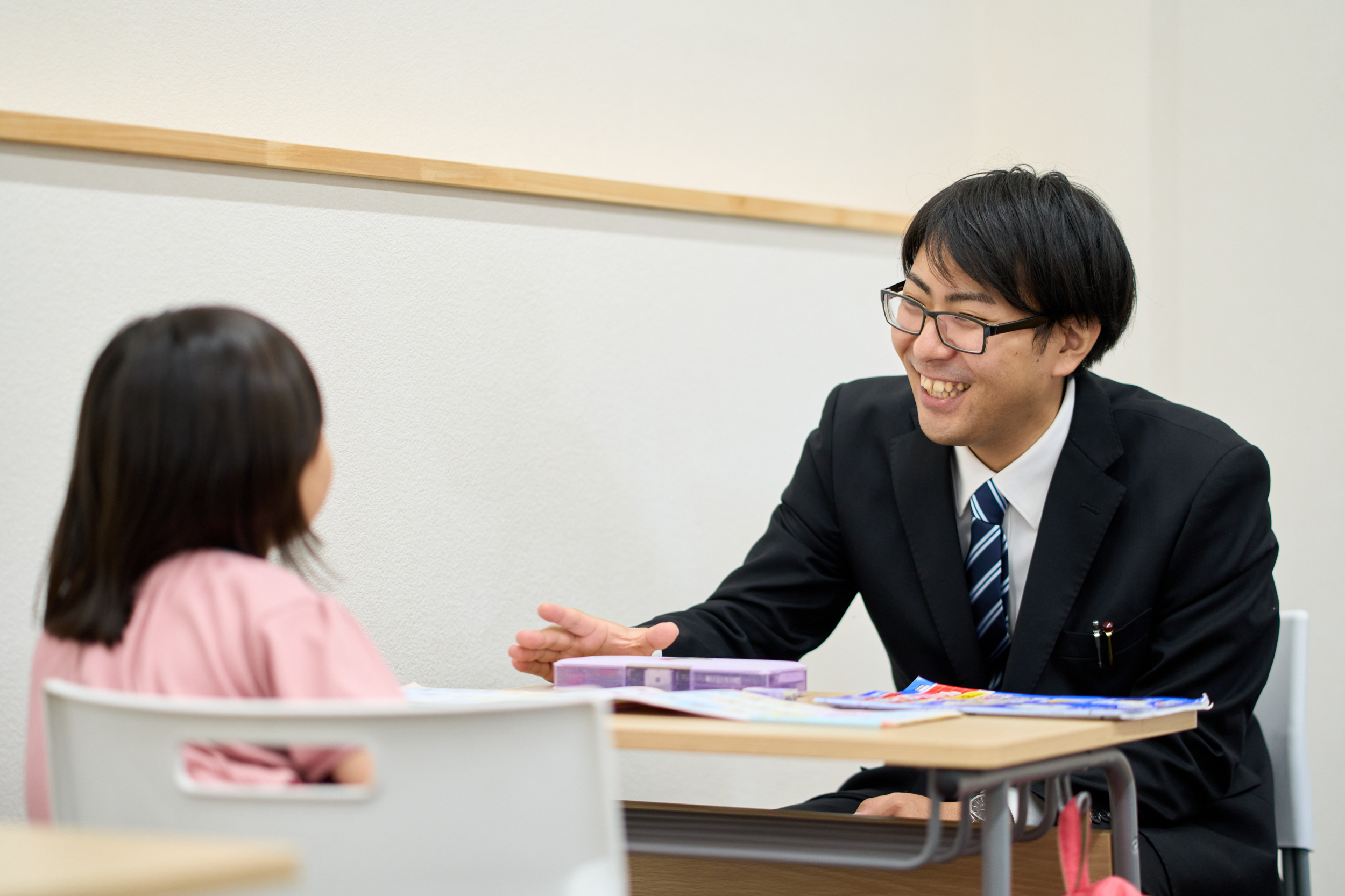 秋山塾の先生は、生徒の表情や取り組みの様子から「わからない」「質問したい」というサインを読み取り、 声がけをしますので、恥ずかしくて自分から質問ができないというお子様でも安心してお通いいただけます。また、生徒の性格に合わせて、かける言葉や説明の仕方も適切に行いますので、ご安心ください。