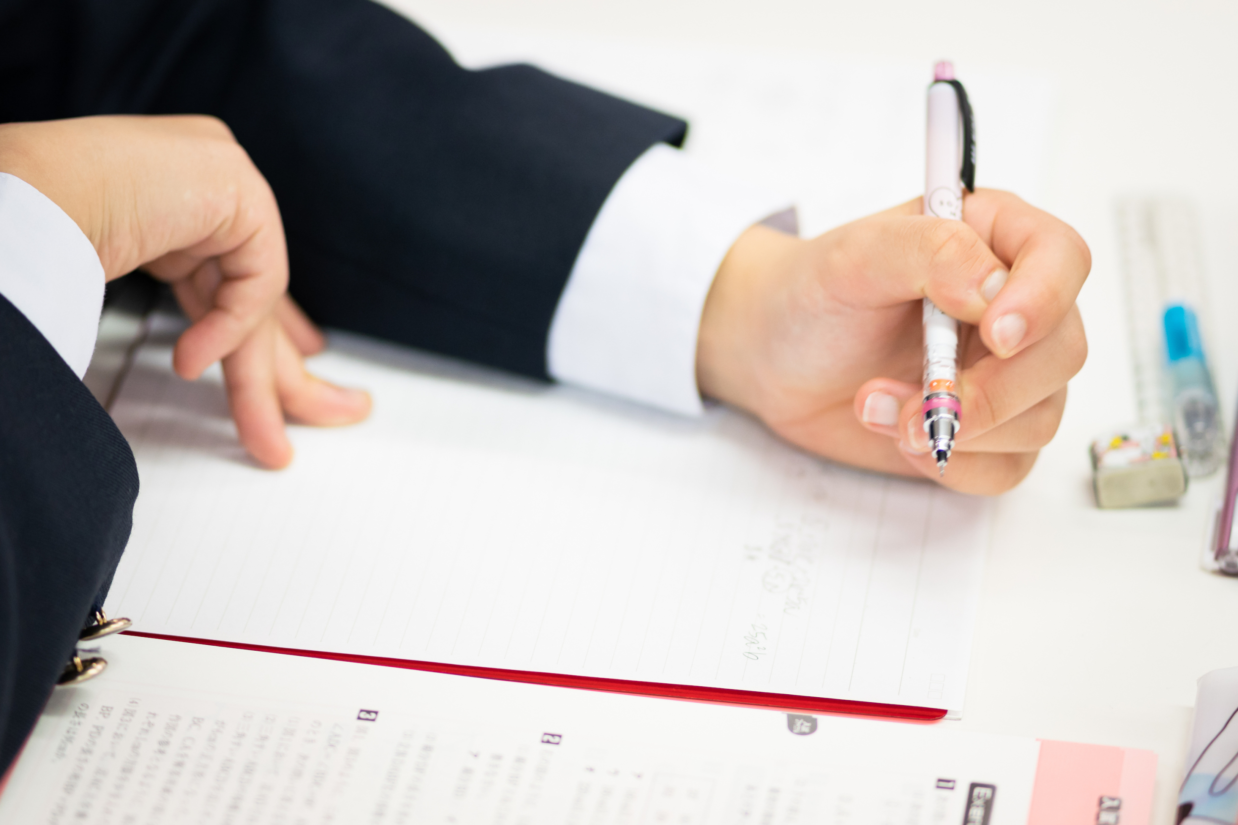 いつからでも入塾できます。年度の途中はもちろんのこと、月の途中からでも通塾を始めていただけます。 また、入塾可否のためのテストは一切行っておりません。現状の学力や目標に合わせて、ひとりひとりに最適な学習計画をご提案しますので、安心してご入塾いただけます。